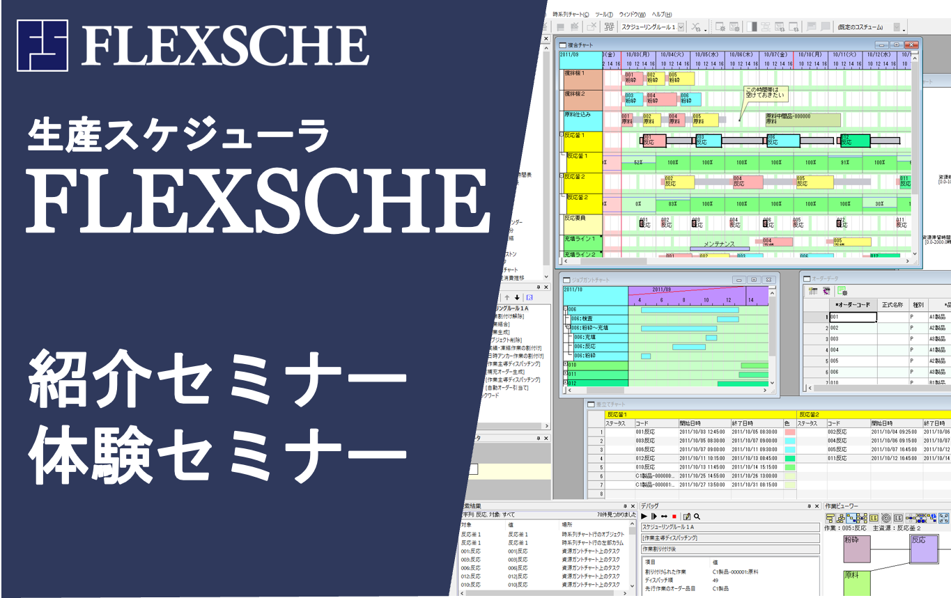 We will introduce FLEXSCHE to those considering a production scheduler. In the experience seminar, you will create a simple model using the FLEXSCHE Editor and experience FLEXSCHE.